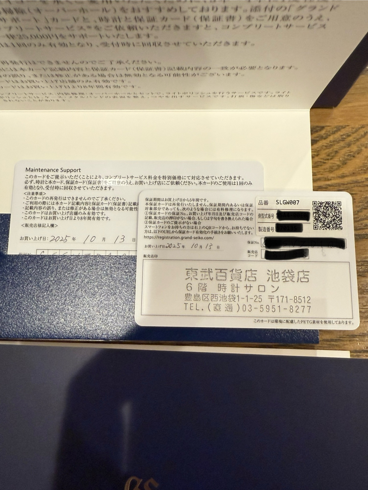国内正規品なので8年間のオーバーホール割引カード付帯します。