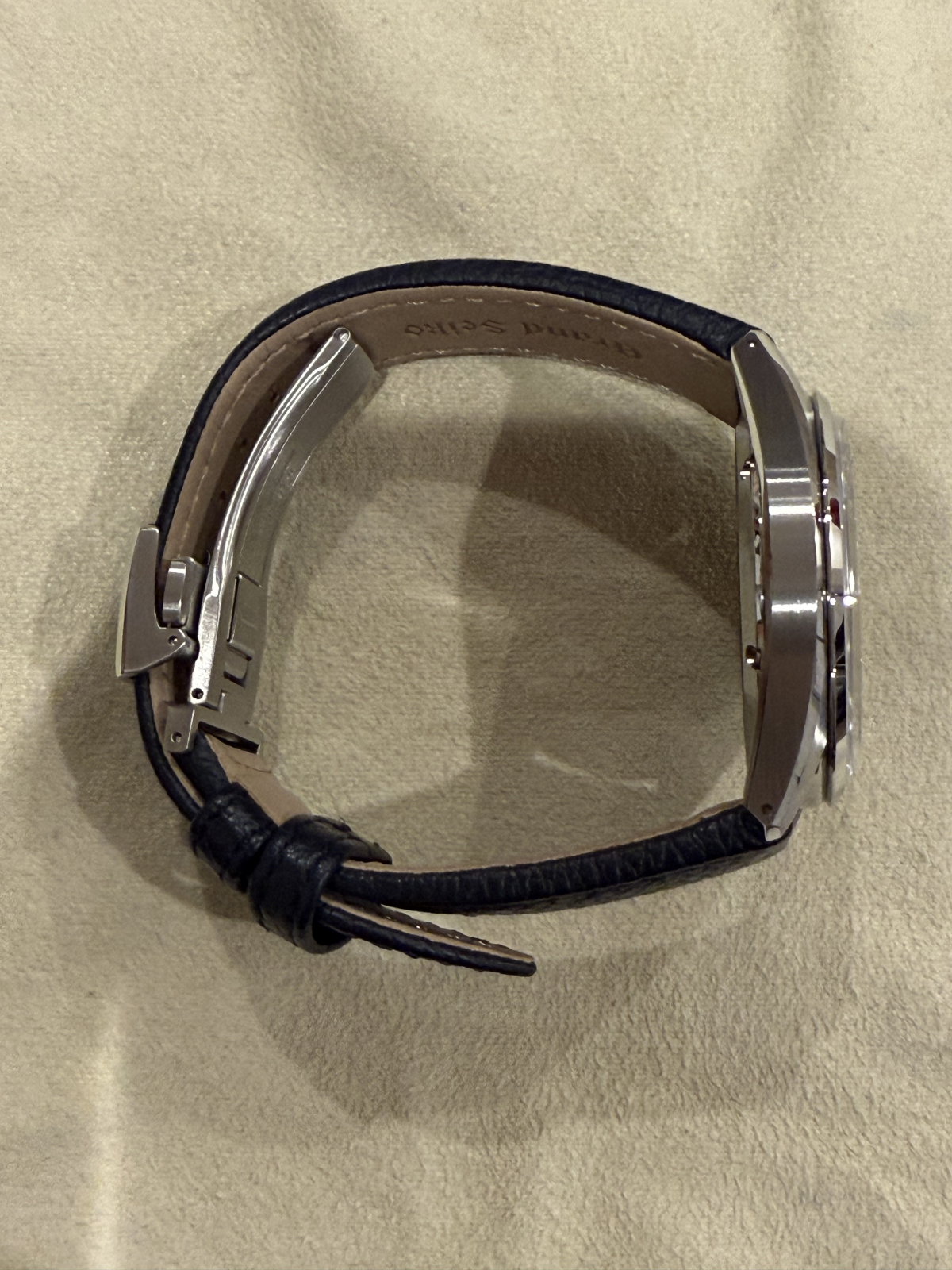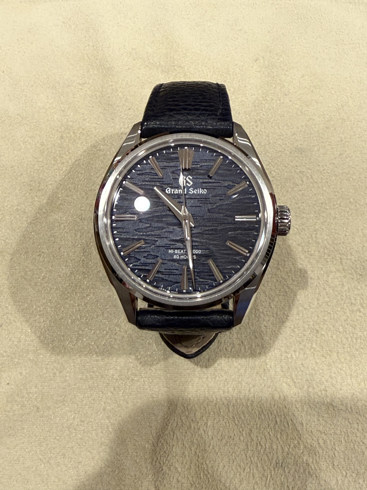 グランドセイコーの真髄と日本の美意識を高い次元で融合させた独自のデザイン文法「エボリューション9スタイル」をベースにした、10振動手巻メカニカルウオッチです。ネイビーカラーのダイヤルは、月あかりに照らされた白樺の樹皮をイメージしました。ステンレススチール製のケースは厚さ9.95mmと薄型に仕上げ、すっきりとしたインデックスやベゼル、ラグの幅が、グランドセイコーのドレスウオッチにふさわしい繊細で優美なる存在感を演出。ムーブメントには、安定した精度につながる毎秒10振動という高い振動数と、最大80時間もの長い持続時間を実現する「キャリバー9SA4」を搭載しています。