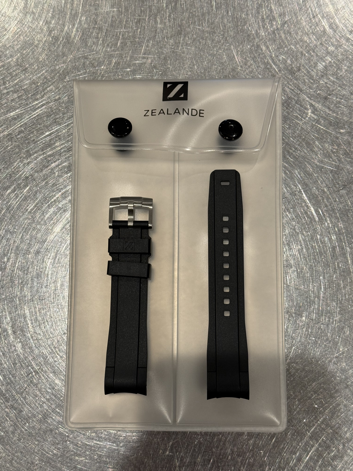 また未使用のZEALANDEの専用ブラックラバーストラップもお付けいたします。