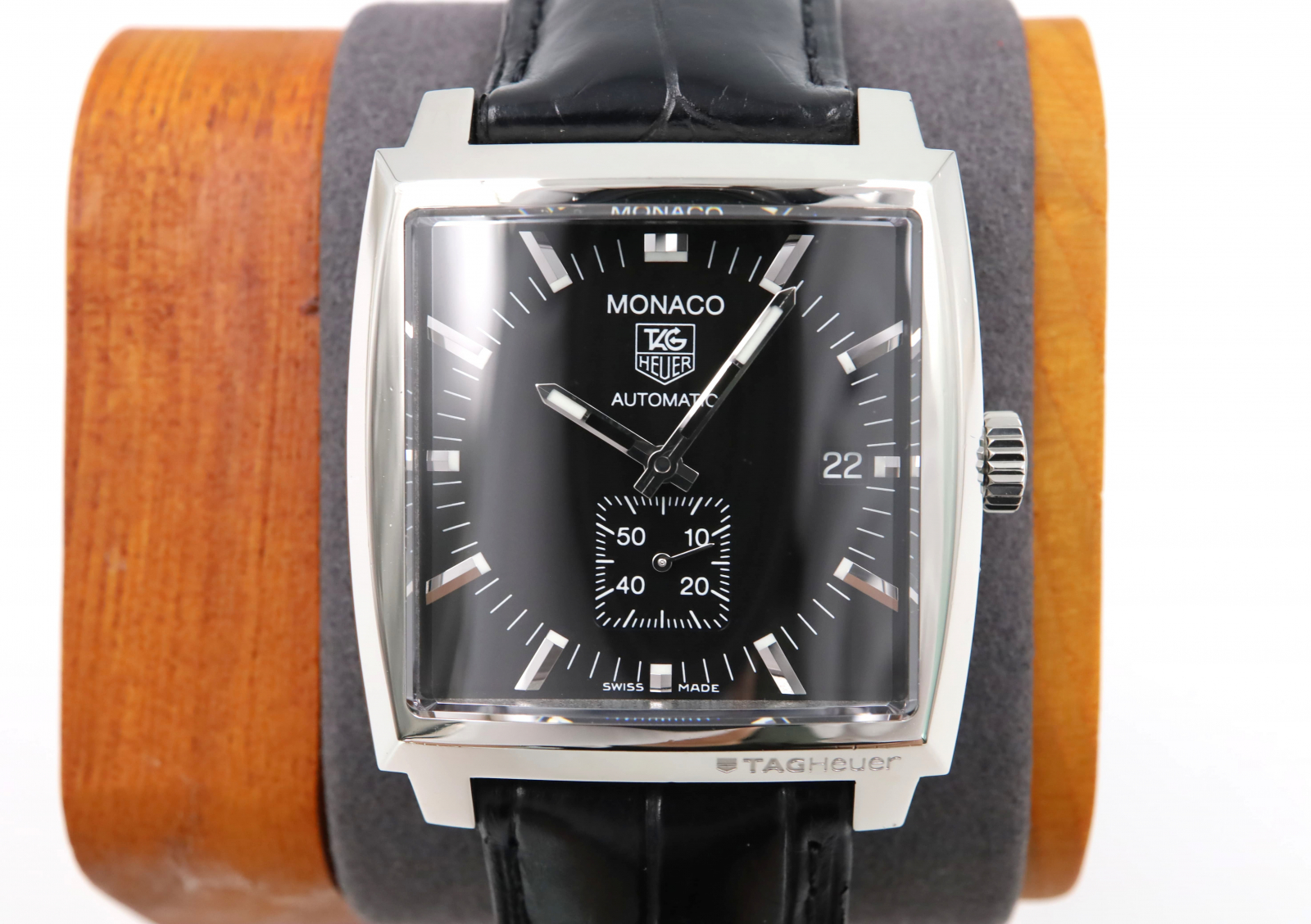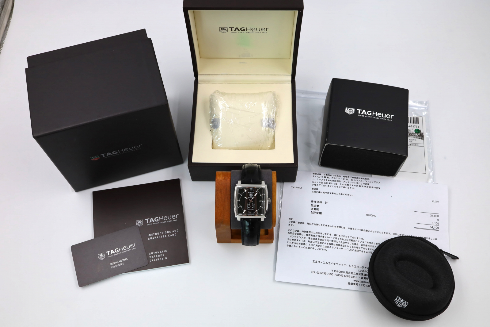 【付属品完備&メーカー整備済み】A(未使用品に近い)タグホイヤー TAG Heuer モナコ WW2110.FC6177 ブラック文字盤 スモセコ