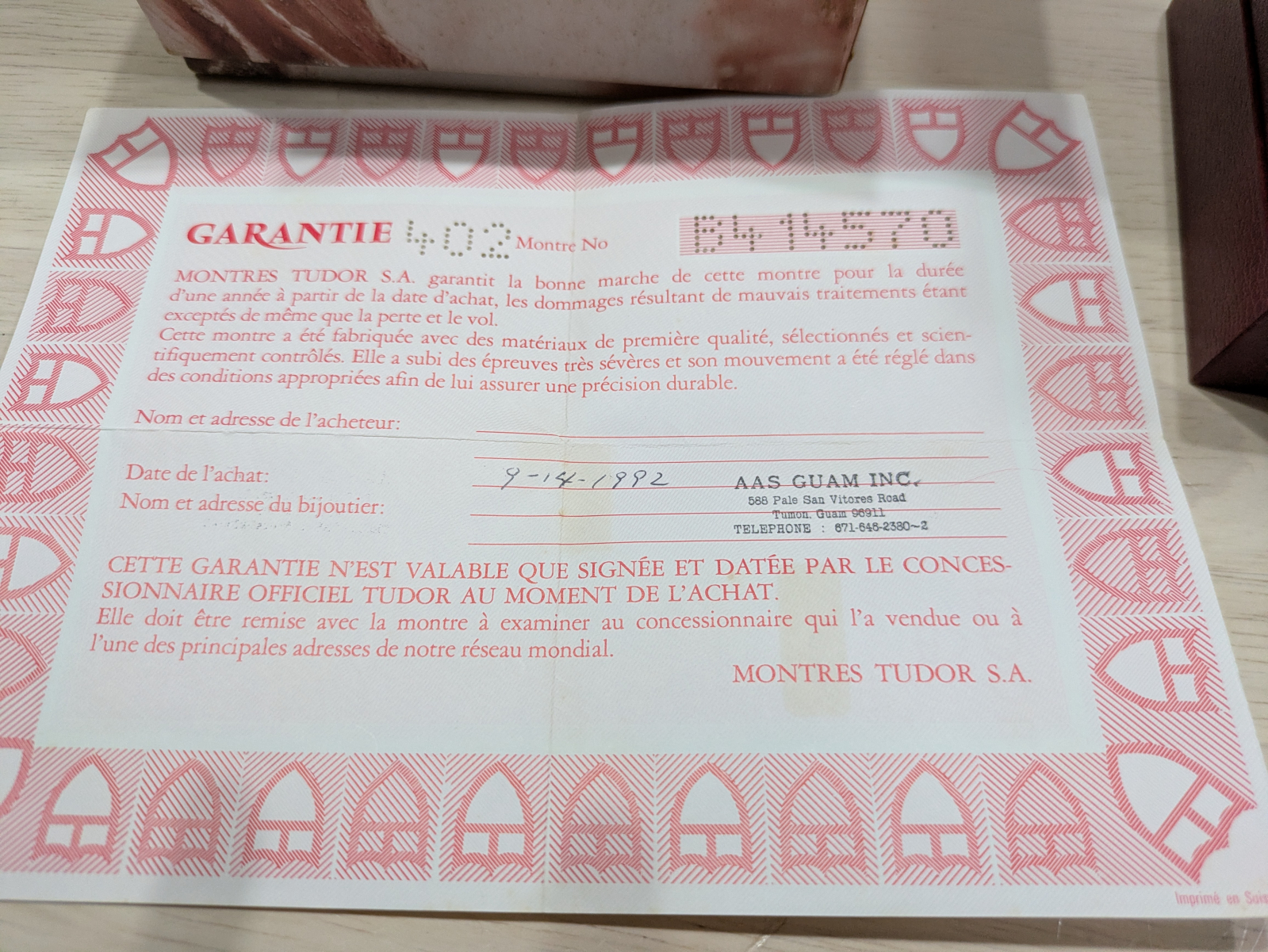 メーカー保証書の有無