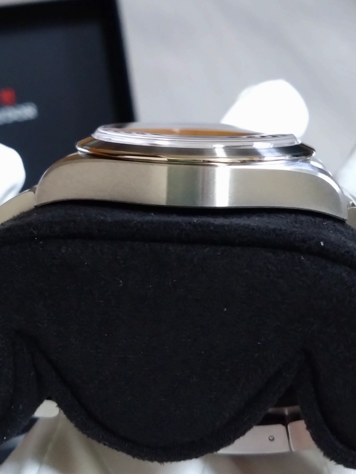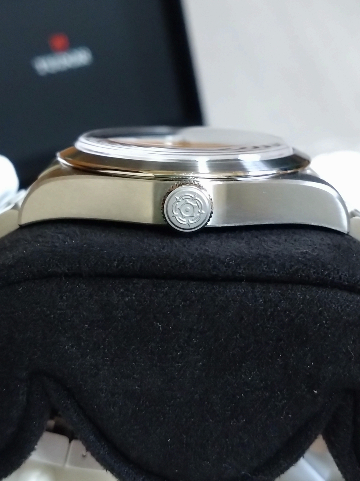 ブロンズ製のブレスに注目です!写真では赤みが強い印象ですが、実際に見てみるとどうなのでしょう。個人的に茶色や赤ベゼルが好みなのでブロンズとの相性が最高✨