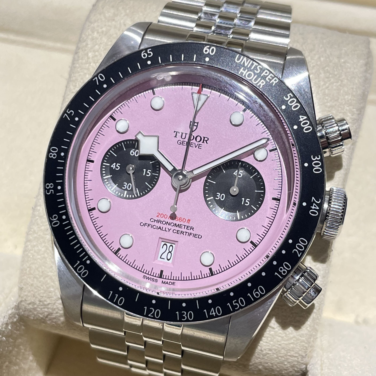 ピンク×黒目文字盤のチューダーブラックベイクロノグラフが入荷して参りました。