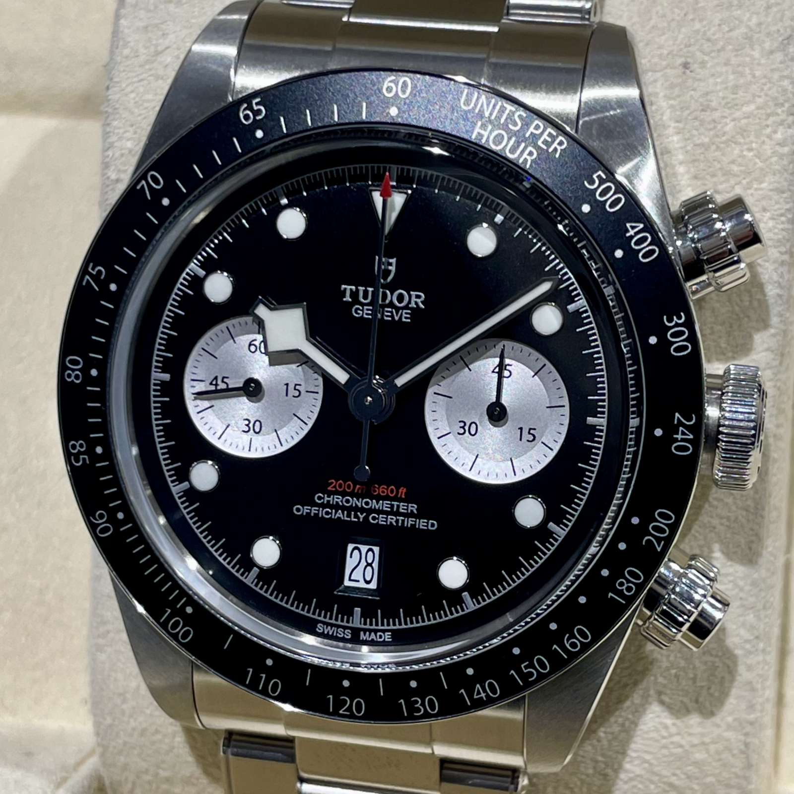 黒×白目文字盤のチューダーブラックベイクロノグラフが入荷しました。