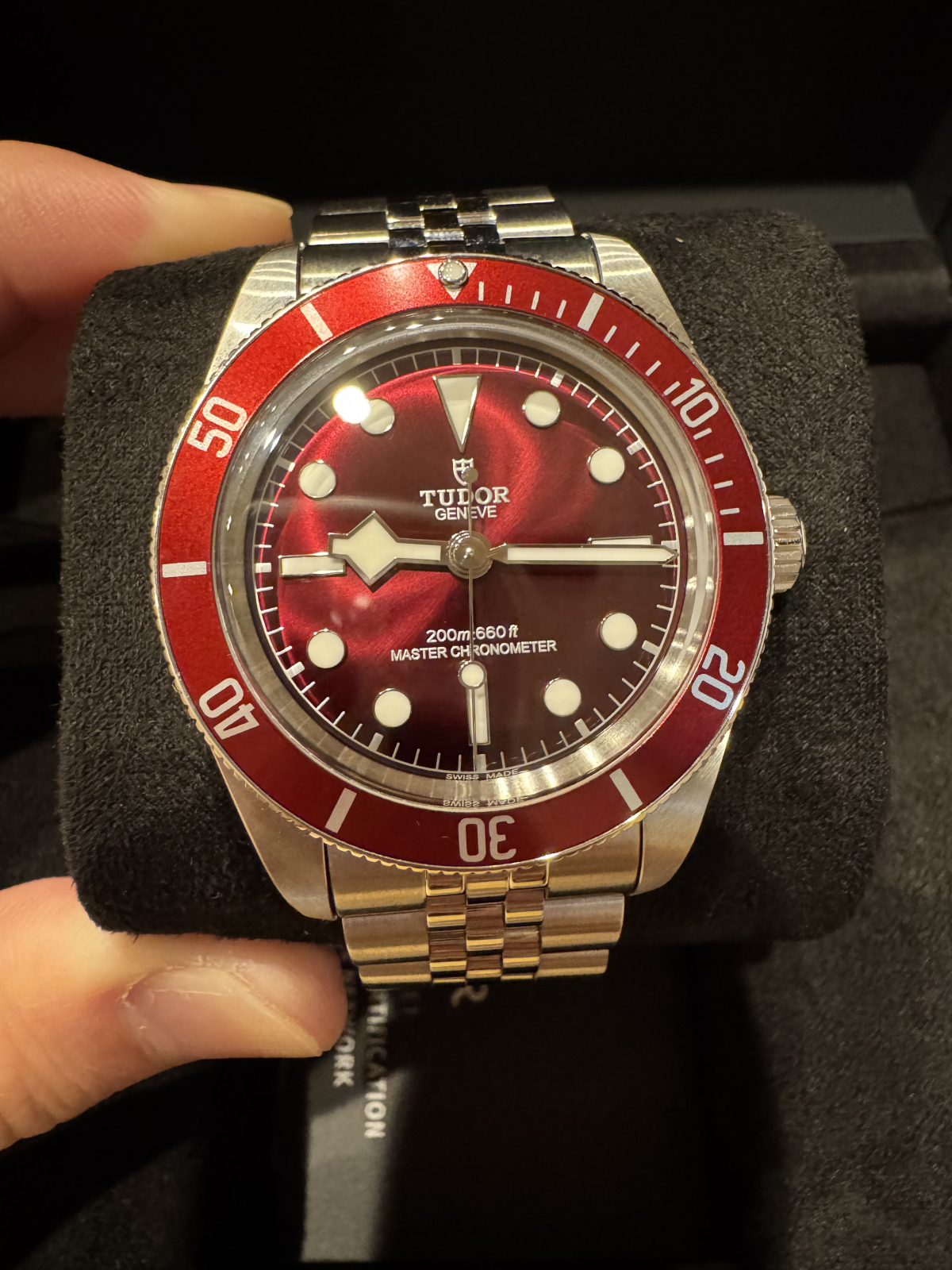 ブロンズ製のブレスに注目です!写真では赤みが強い印象ですが、実際に見てみるとどうなのでしょう。個人的に茶色や赤ベゼルが好みなのでブロンズとの相性が最高✨