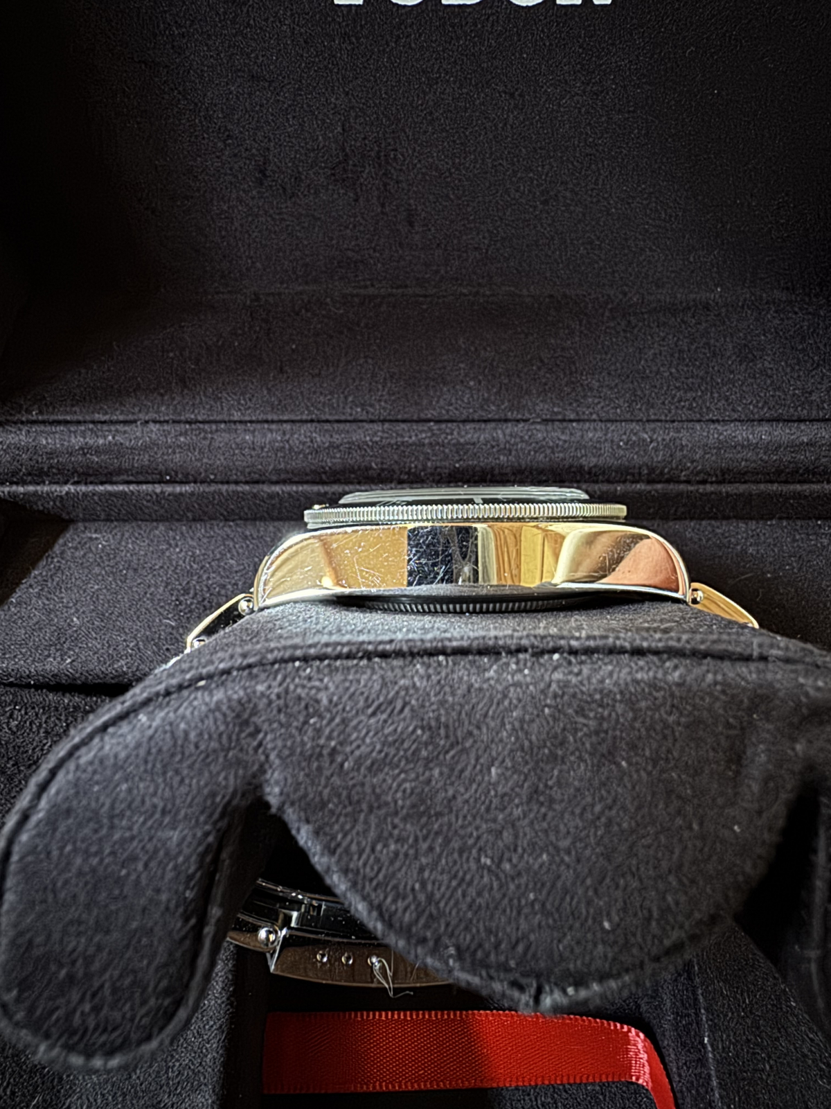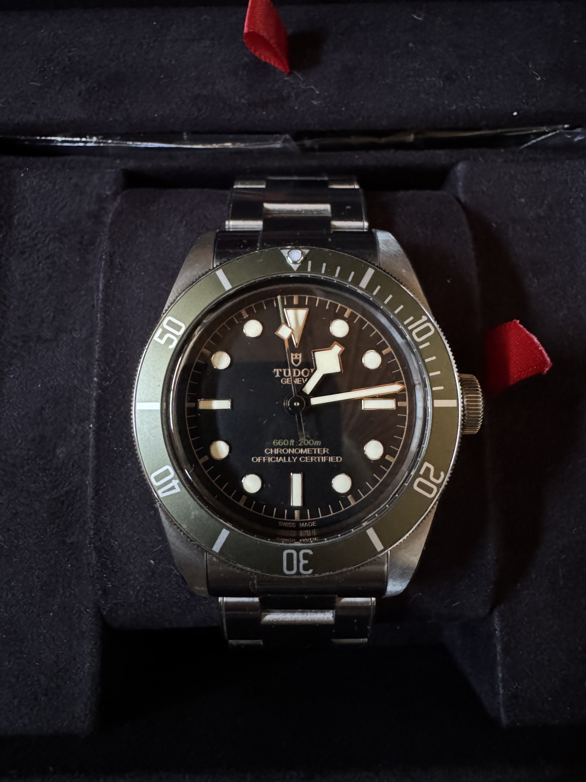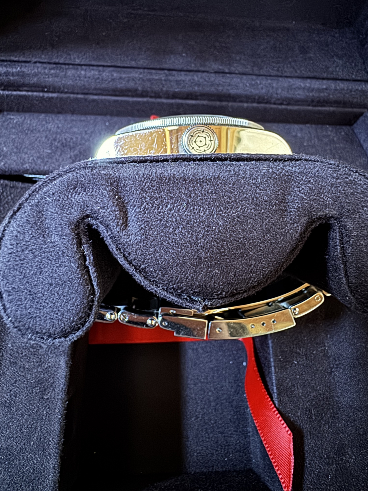 ブロンズ製のブレスに注目です!写真では赤みが強い印象ですが、実際に見てみるとどうなのでしょう。個人的に茶色や赤ベゼルが好みなのでブロンズとの相性が最高✨