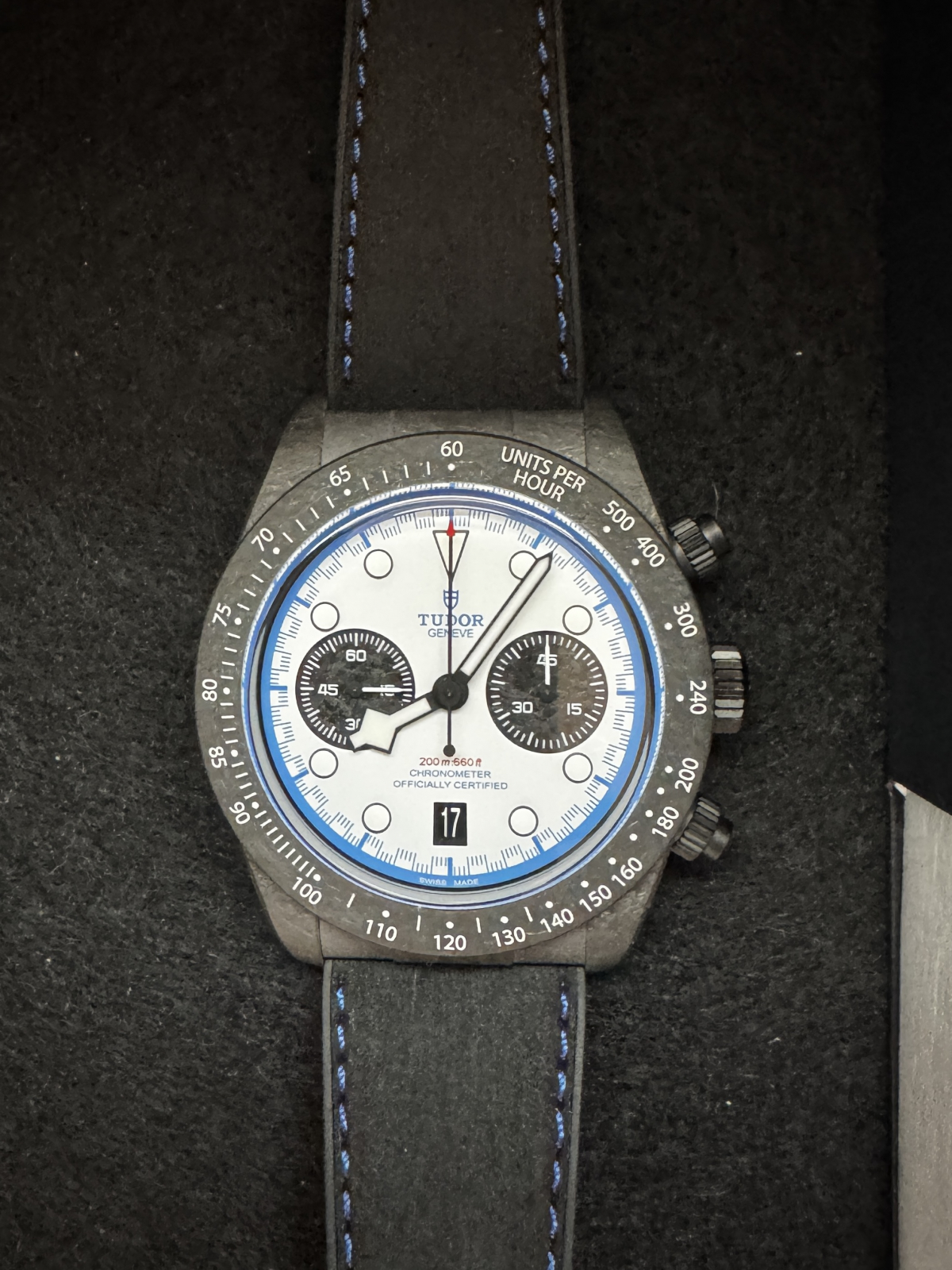 チューダーが長年にわたり築いてきたモータースポーツとの関係性を、現代的に表現したモデルです。1950年代からレースの世界と歩んできたブランドの歴史を背景に、最先端素材とレーシングスピリットを融合させた一本となっています。