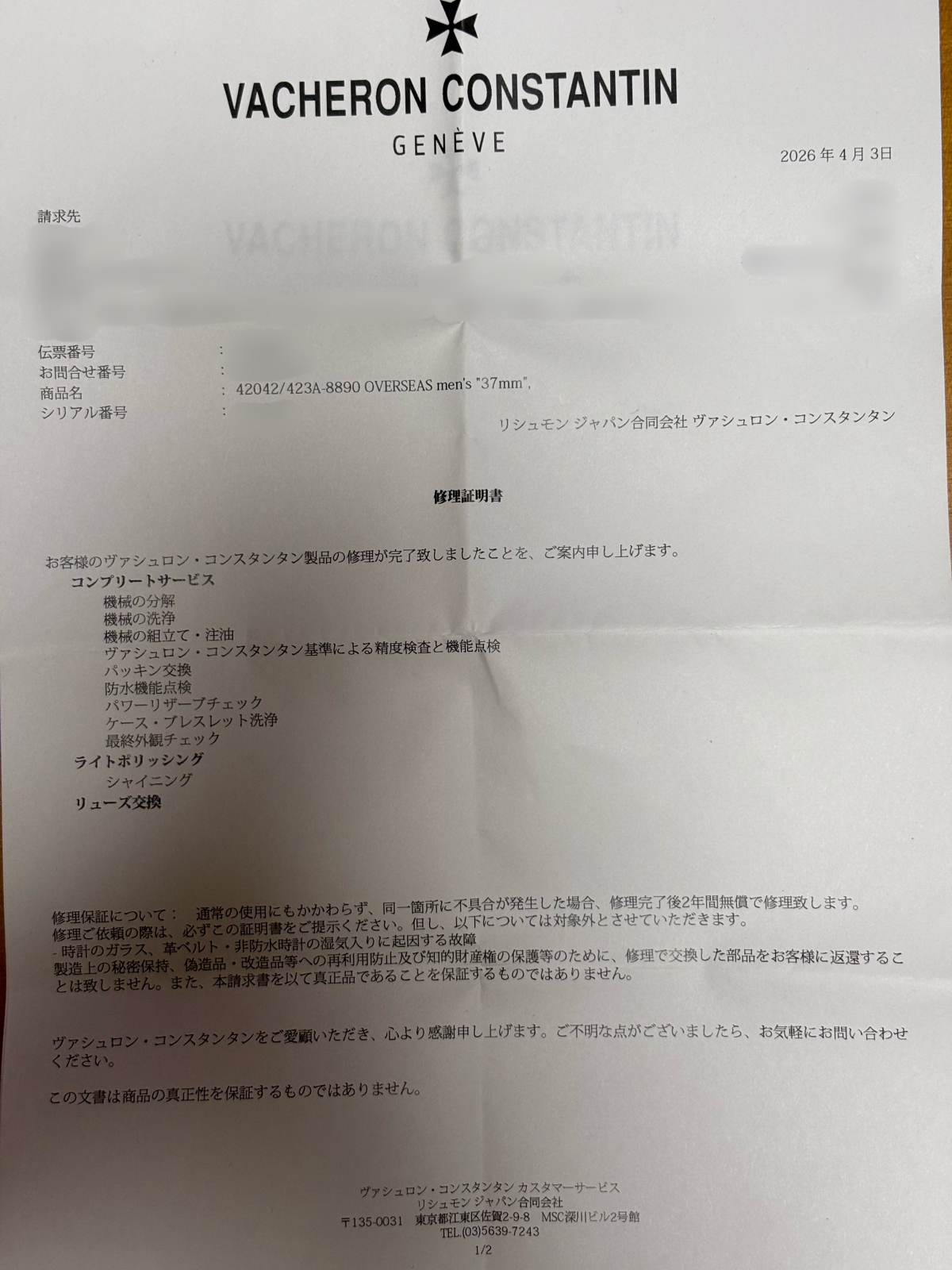 2026年4月にメーカーオーバーホールしております。
